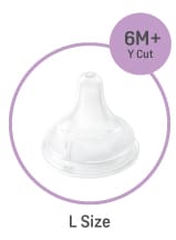 A L size nipple has an increased milk flow which is suitable for 6M+. The opening of the nipple is slightly bigger than M size nipple to allow more milk to drip out. |