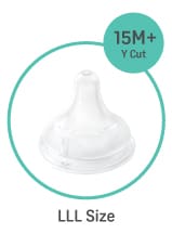 A LLL size nipple has an increased milk flow which is suitable for 15M+. Milk drips out when there’s pressure on the nipple. This helps babies to control the flow of milk and train their sucking ability as babies at this age have developed a stronger jaw muscle. |