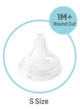 A S size nipple has an increased milk flow which is suitable for 1M+. Allows milk to drip out consistently and gradually with minimal sucking. |