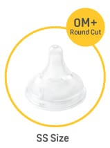 A SS size nipple is ideal for newborns as it has a smaller tip and the softnes and elasticity is closer to mother’s nipple. |
