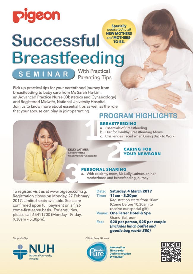 Pigeon Singapore is collaborating with National University Hospital for our first Breastfeeding Seminar for 2017. Pick up practical and essential tips from breastfeeding to baby care and more. Limited seats available, so register now to book your seat!