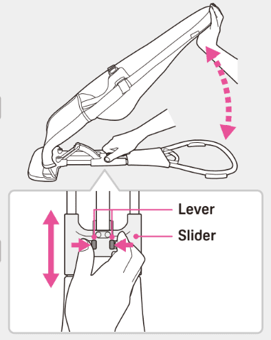(1) With the lever pushed inward, release the knob while slightly lifting the frame.