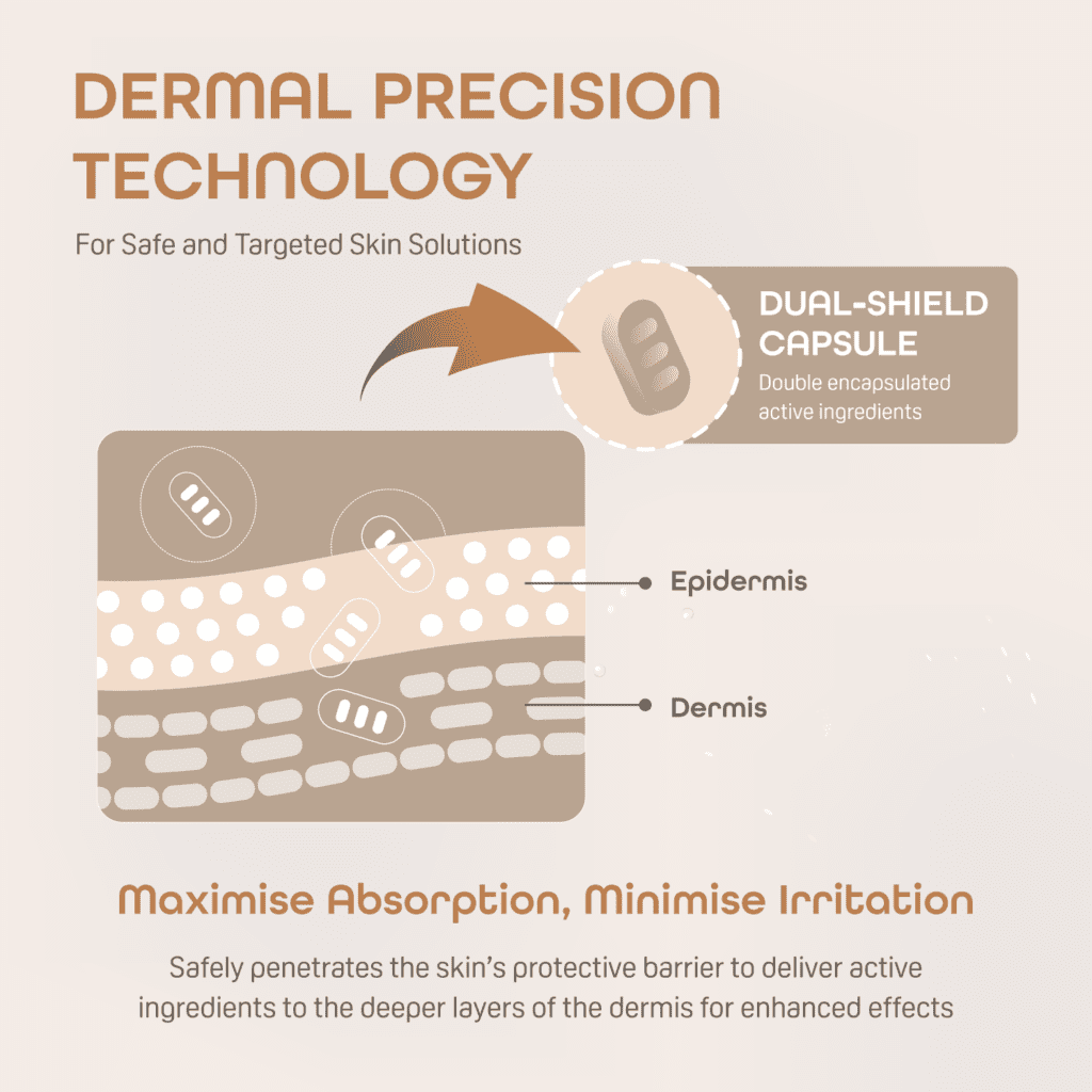 What sets this range apart is its innovative delivery technology (Dermal Precision Technology), designed to target skin concerns at their source rather than just on the surface. Aligned with our commitment to mother nature, the products are made with upcycled ingredients and eco-friendly packaging — caring not only for your skin but also for the planet, so we leave behind a richer world for the babies of tomorrow.